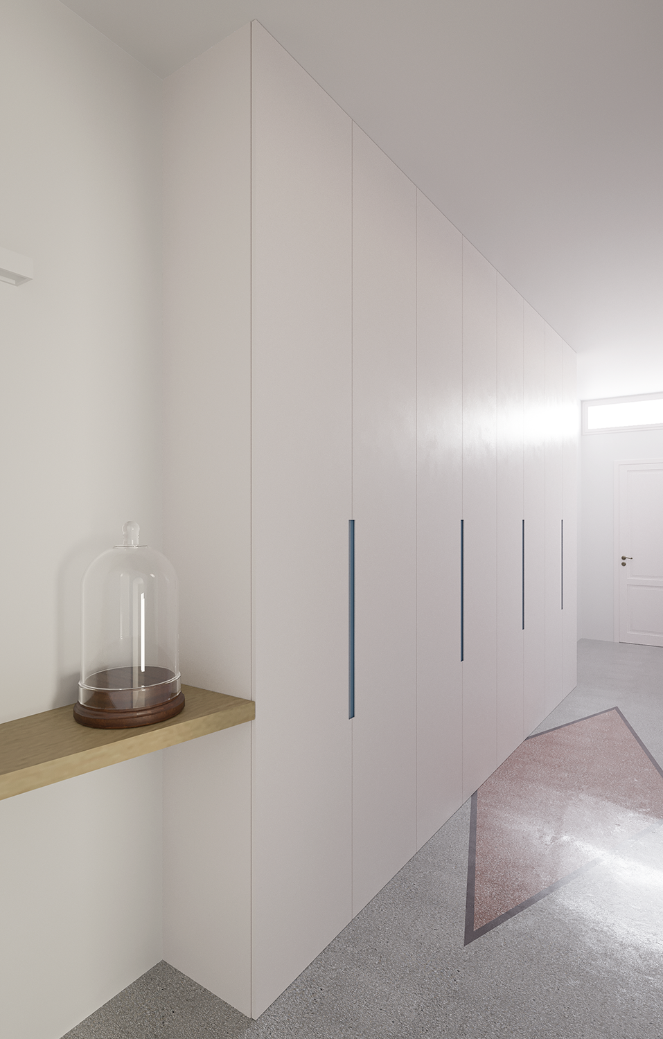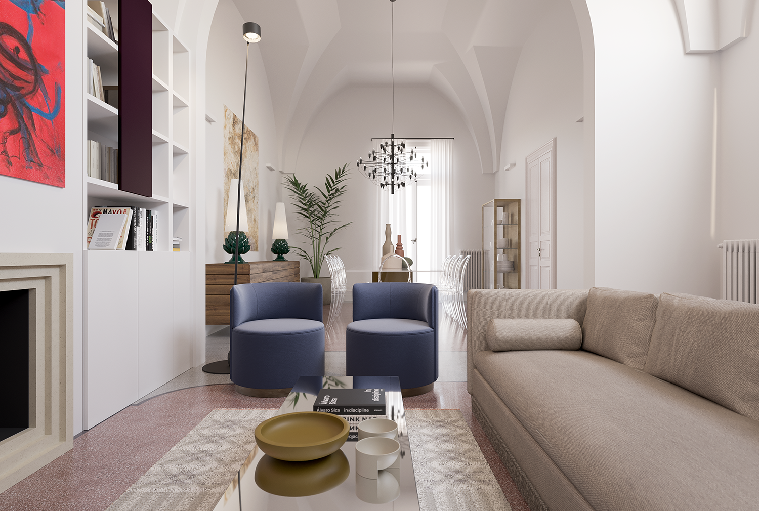 L’abitazione si trova a Galatina, in Salento, in un palazzo del primo Novecento, con le tipiche volte a stella e i pavimenti in seminato veneziano. Con l’intervento di ristrutturazione si sono ridefiniti gli spazi, dividendo la zona giorno dalla zona notte, un tempo invece in comunicazione attraverso la classica disposizione di stanze a enfilade. Dei nuovi ambienti che si sono realizzati si è voluto sottolineare  la presenza attraverso l’uso di colori tratti dalla pavimentazione originale.